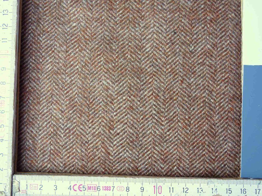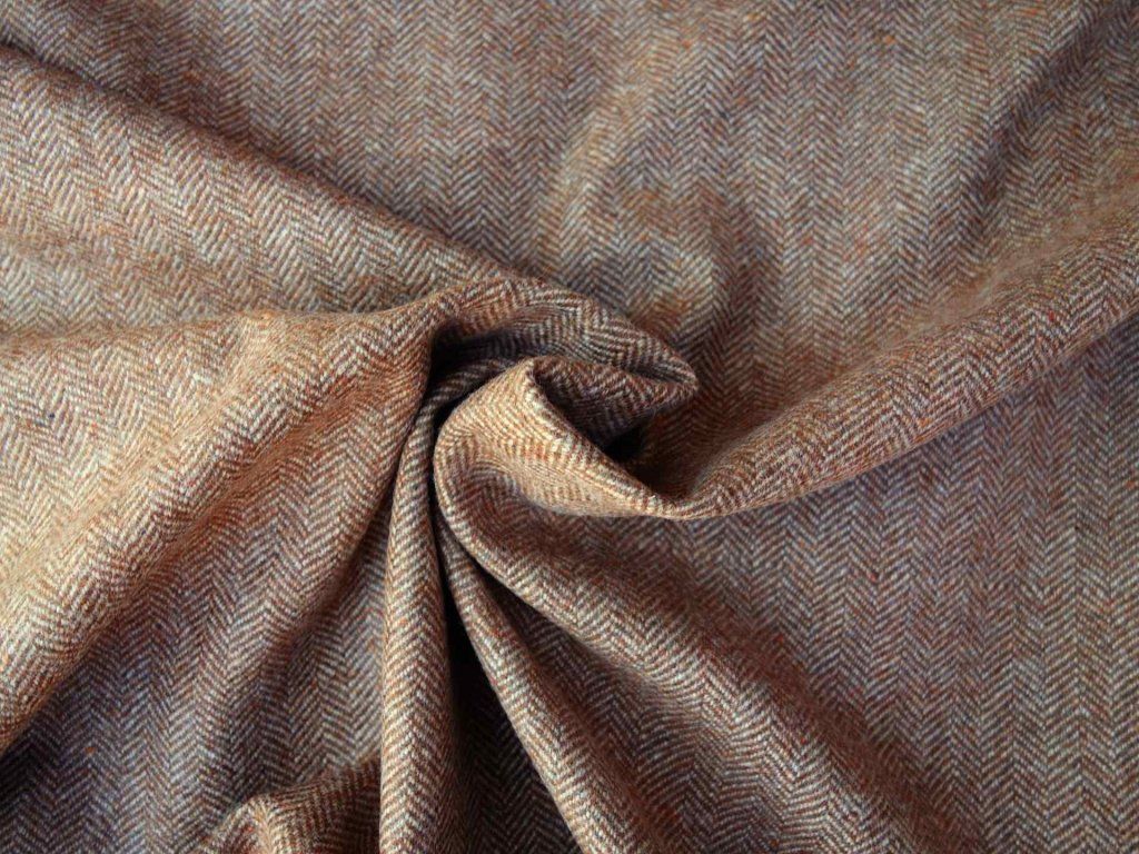 Středně silná zavalchovaná vlněná rybí kost utkaná z oříškově hnědé a bílé příze .