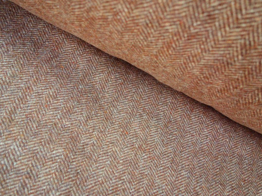 100% vlněná látka Oříškově hnědá-bílá rybí kost