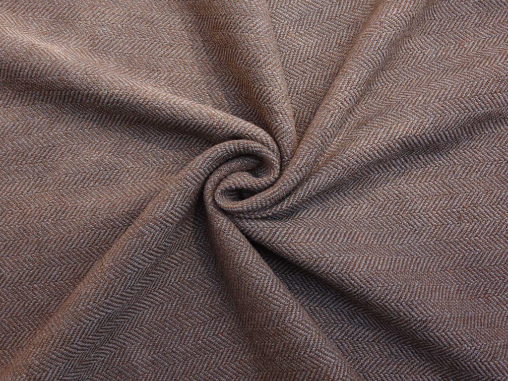 100% vlněná látka extra silná Hnědo-šedá rybí kost