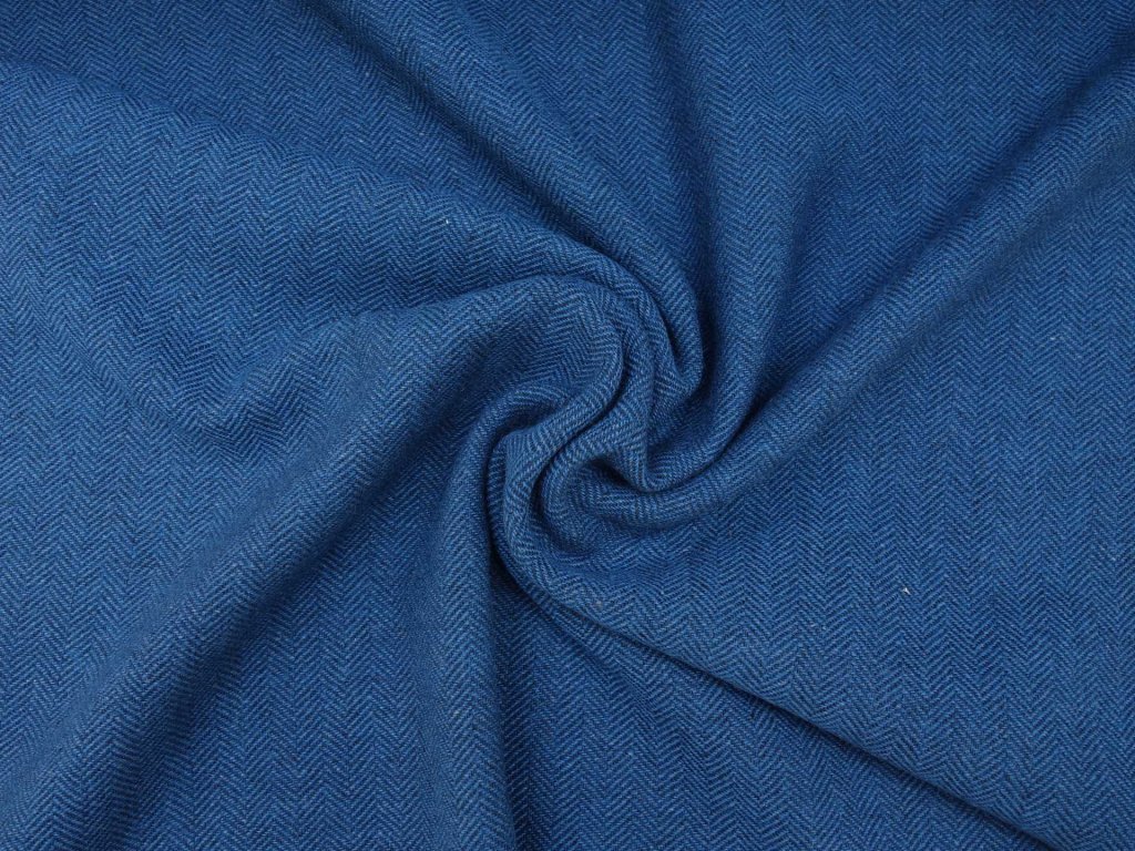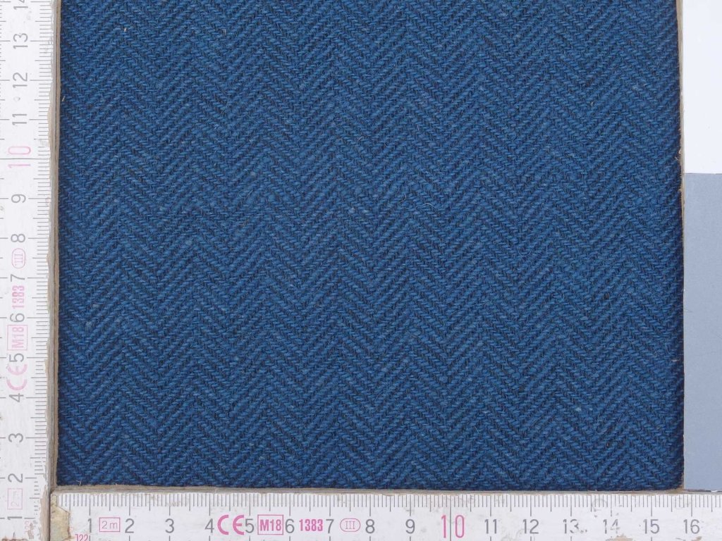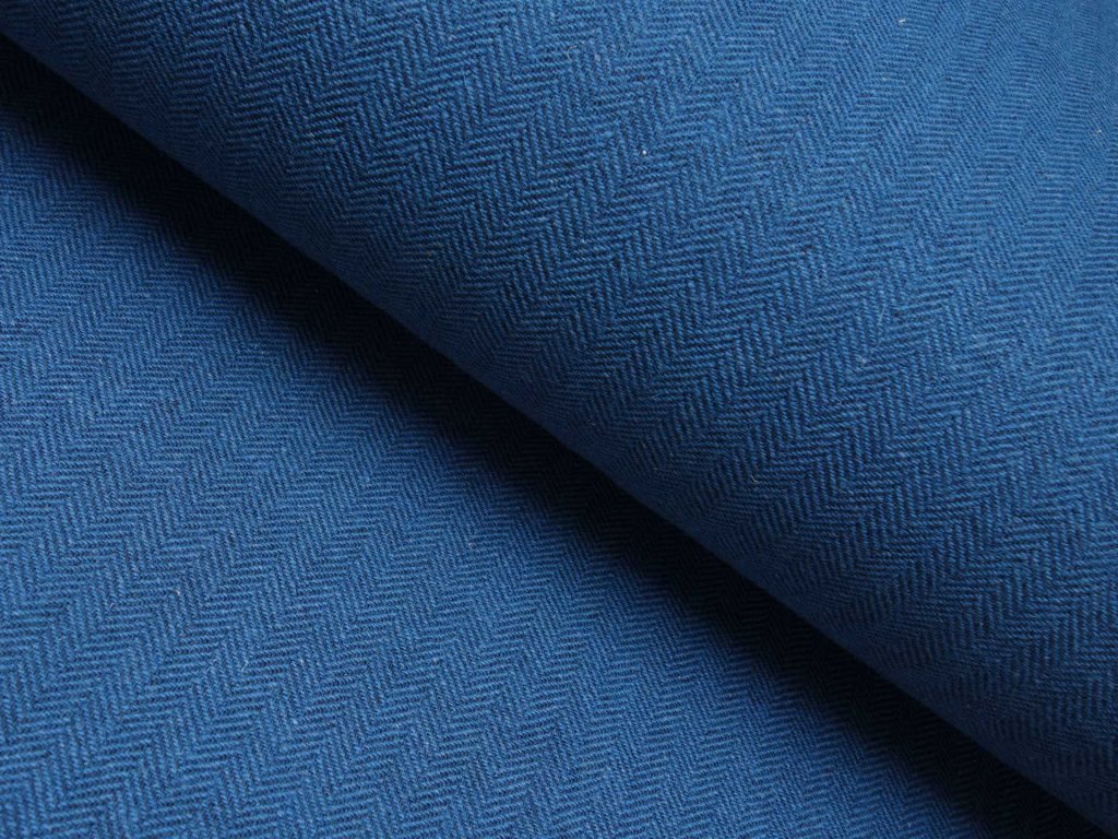 Středně silná vlněná rybí kost utkaná z modré a antracitové příze.