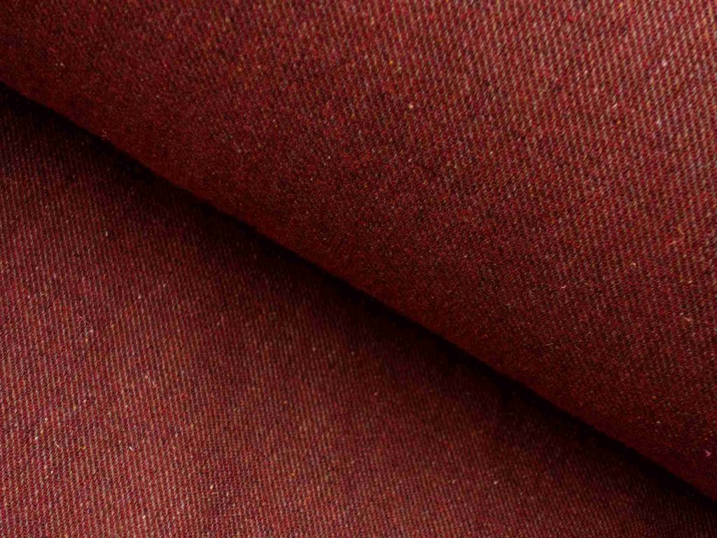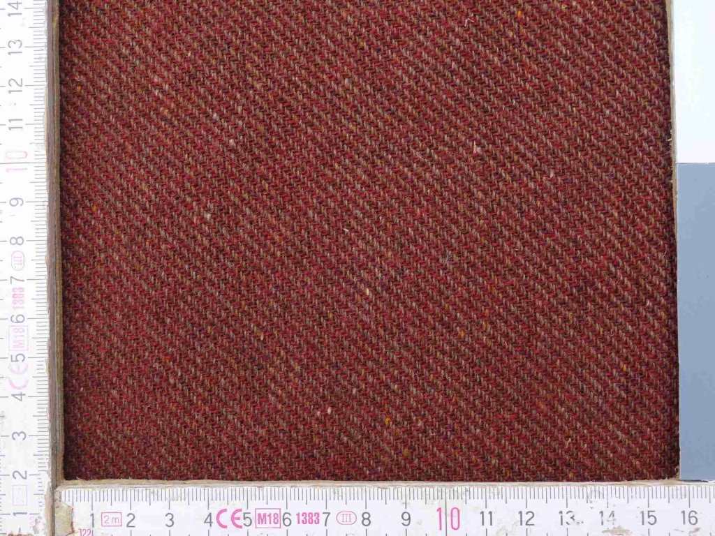 Středně silný vlněný kepr utkaný z vínové-hnědé příze.