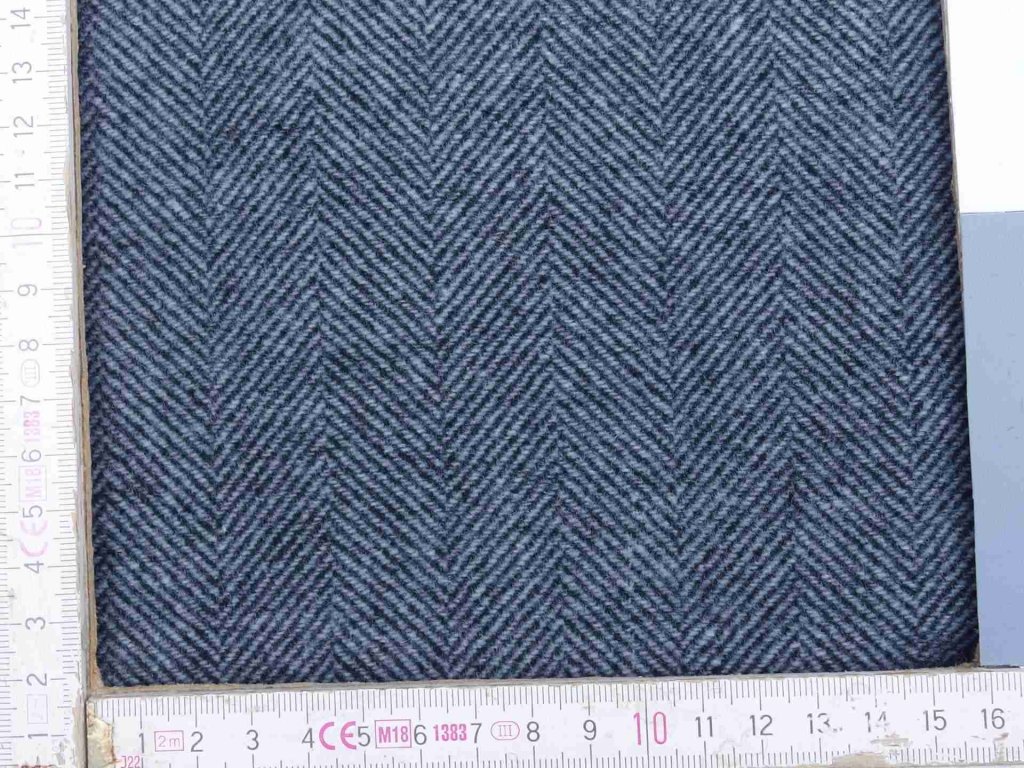 Středně silná vlněná rybí kost utkaná z šedé a černé příze.