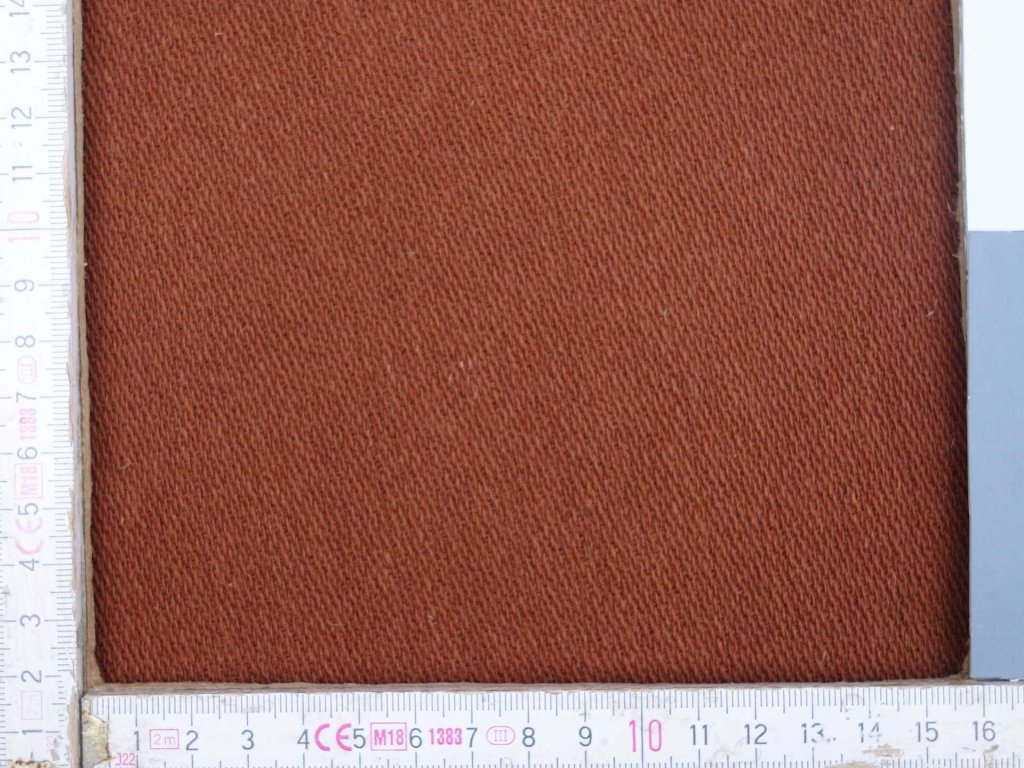 Středně silný vlněný kepr utkaný ze skořicově hnědé příze.