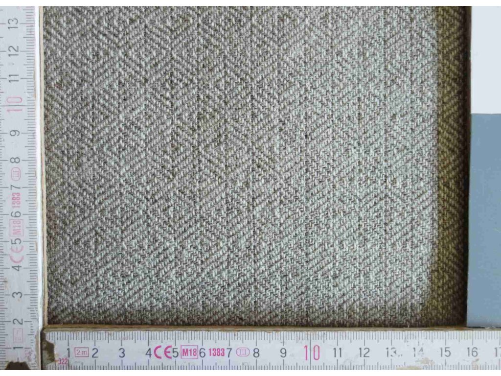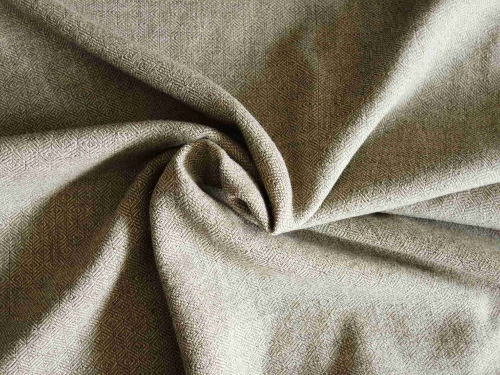 Woolen diamond twill weaved from natural beige and white yarns. (able for dying)
