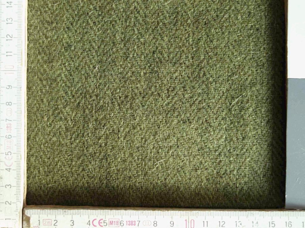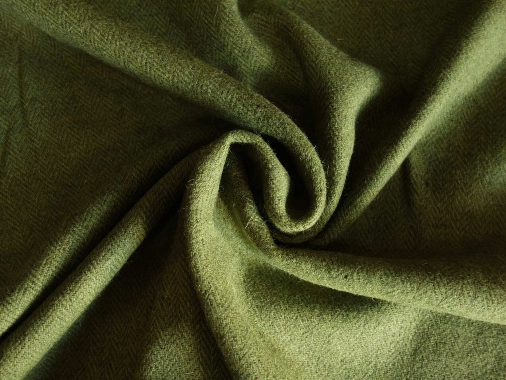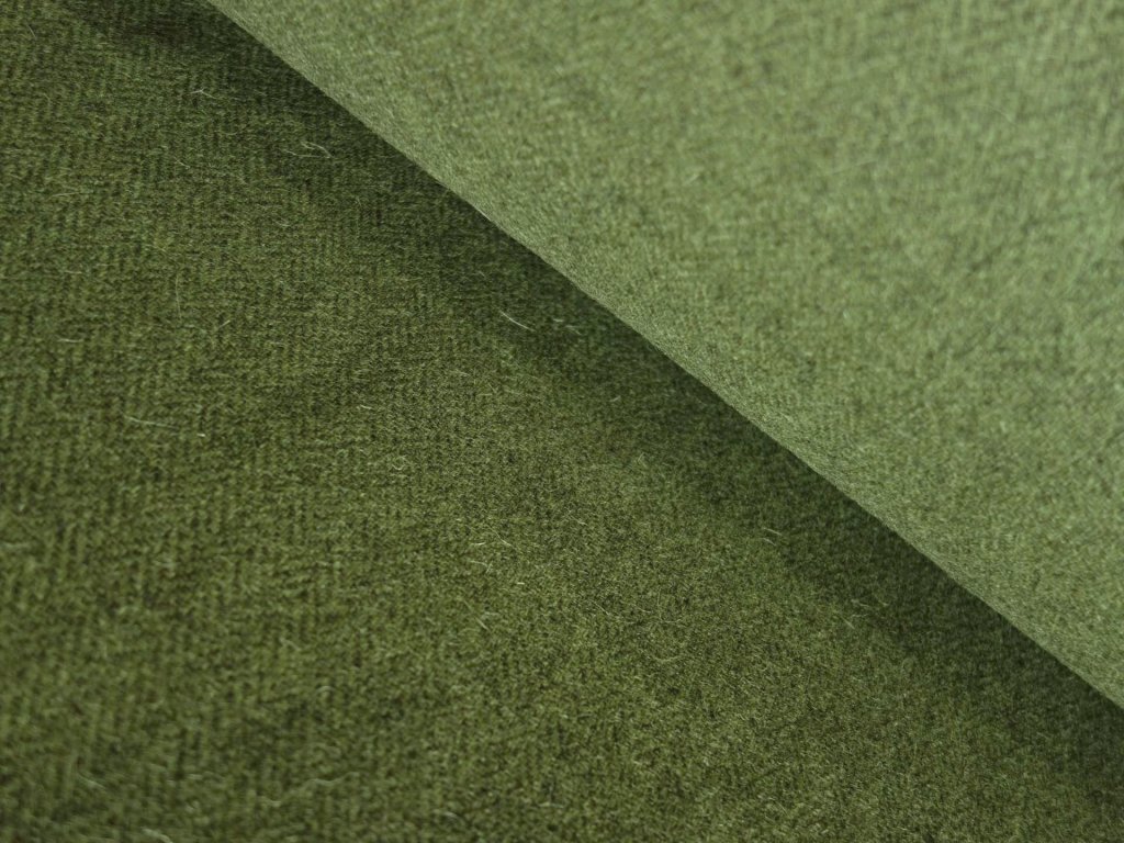 Medium thickness woolen herringbone weaved from light green and grey yarns.