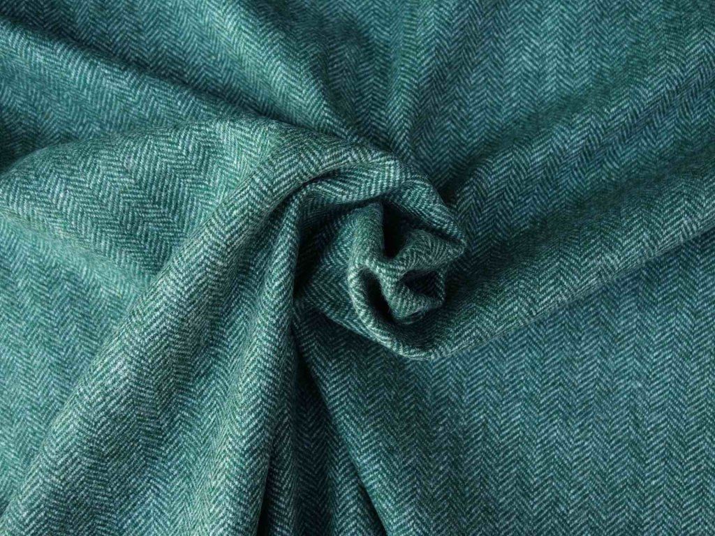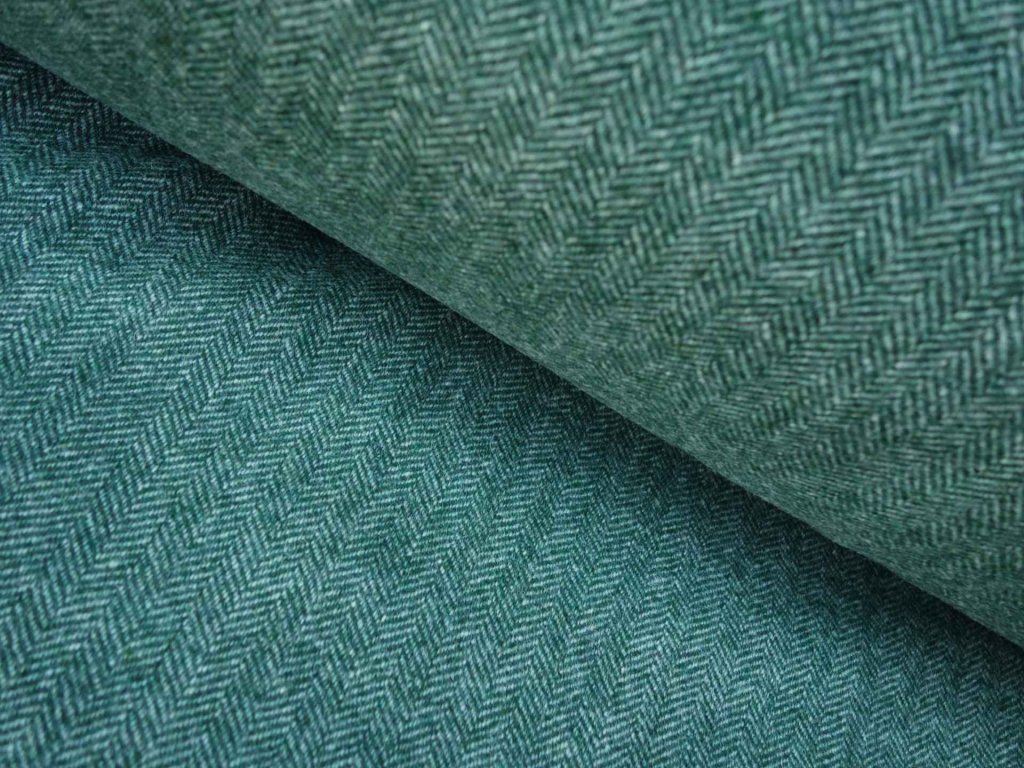 Medium thick , fulled woolen herring bone weaved from green and white yarns.