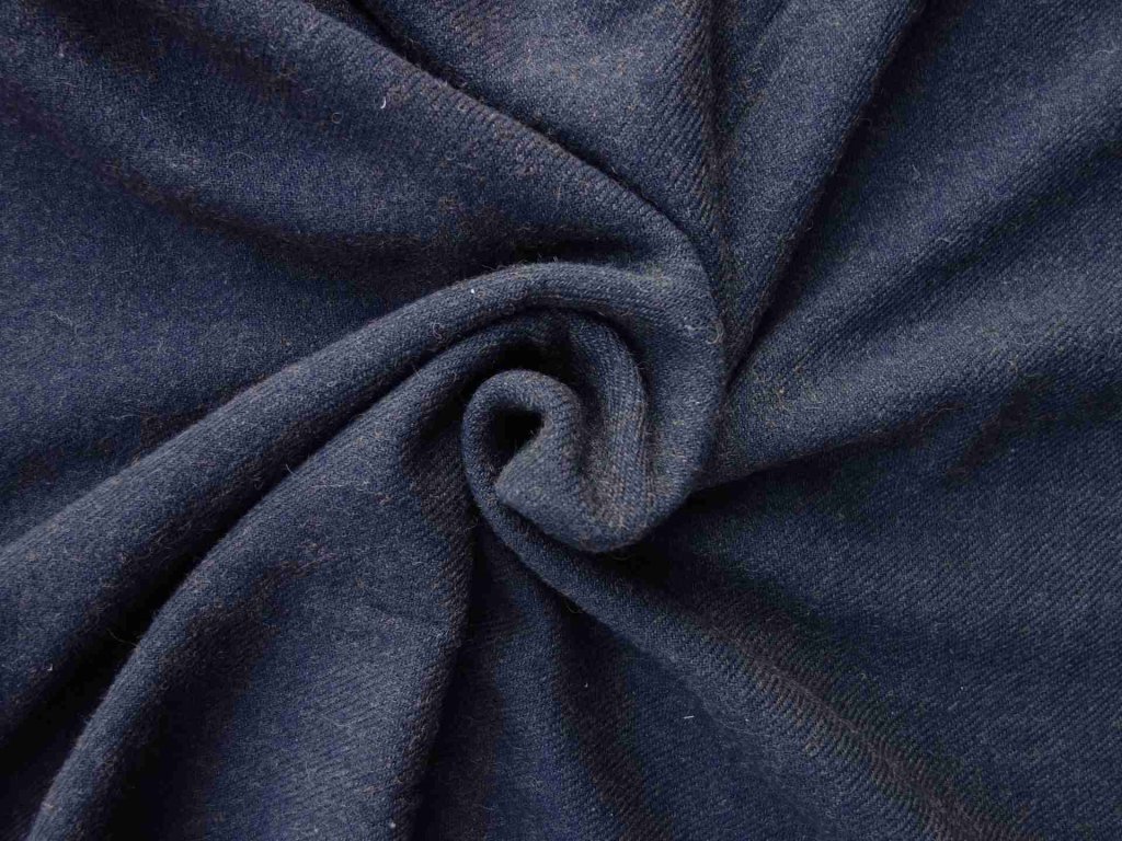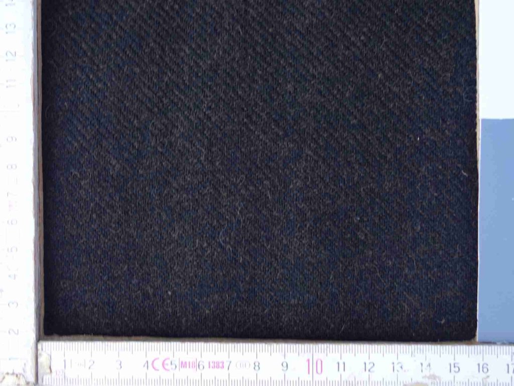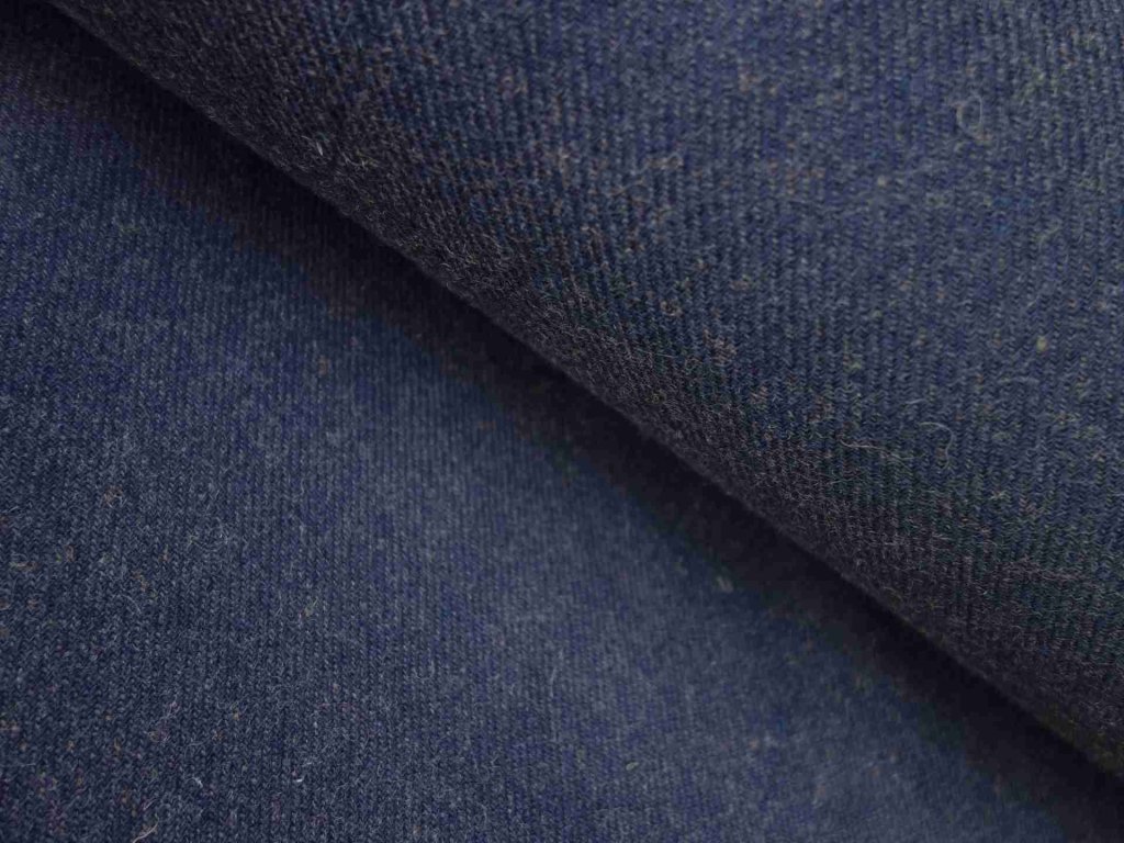 Medium thickness woolen twill weaved from dark brown and antracite yarns.