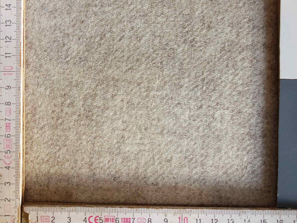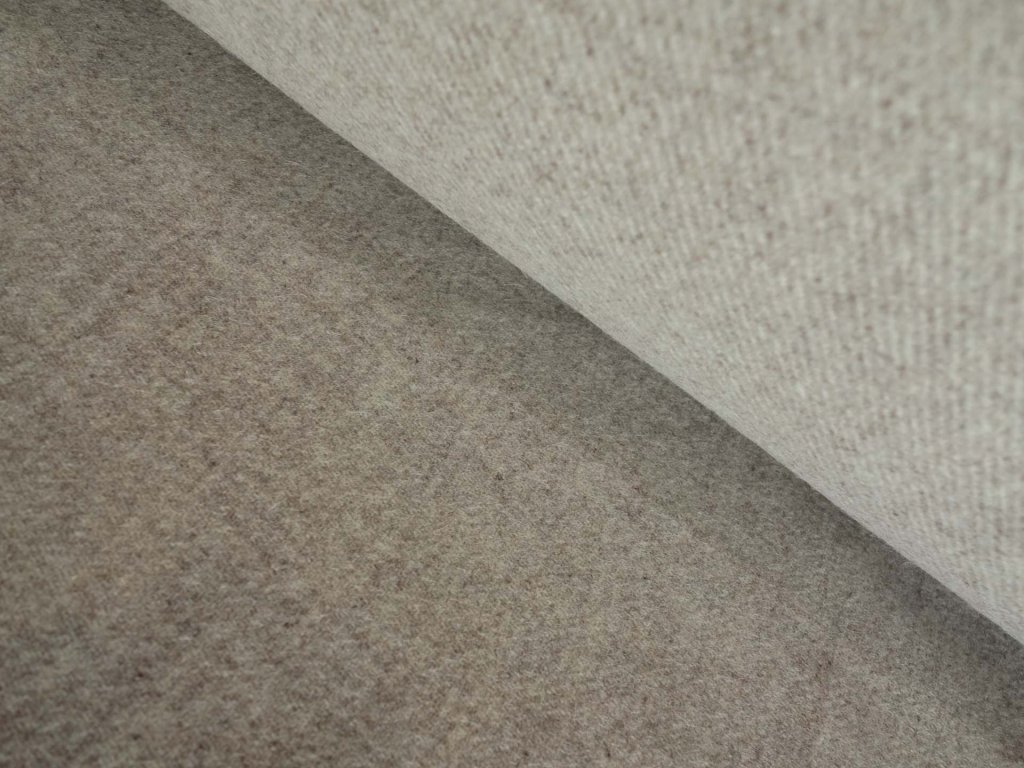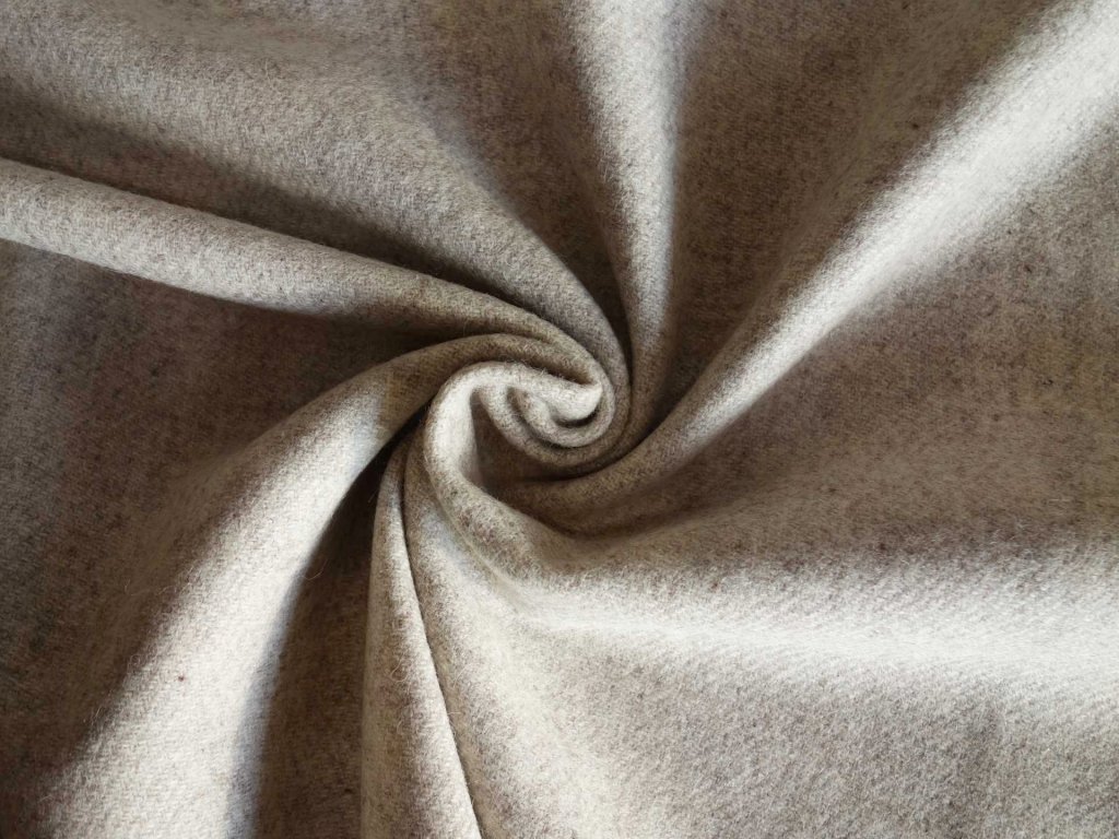 Thicker, partly walled woolen twill weaved from natural beige yarns.