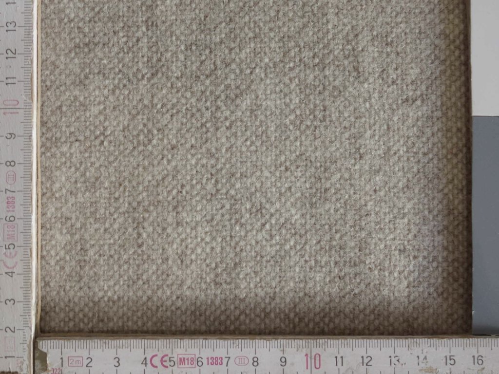 Rough, thick woolen plain weaved from beige yarns. (Able for dying)