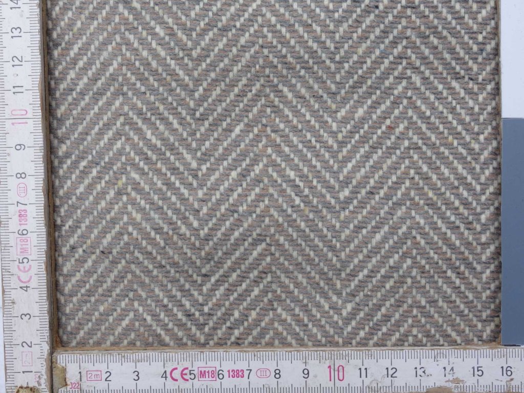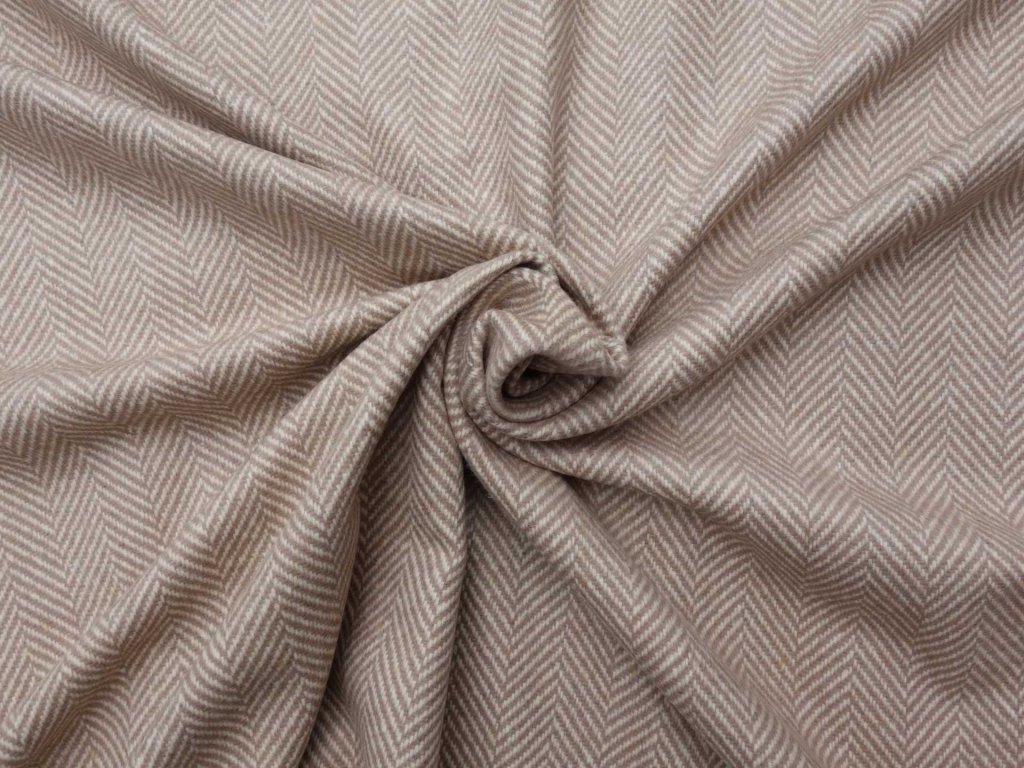 Heavy thickness large woolen heringbone weaved from beige and white yarns.