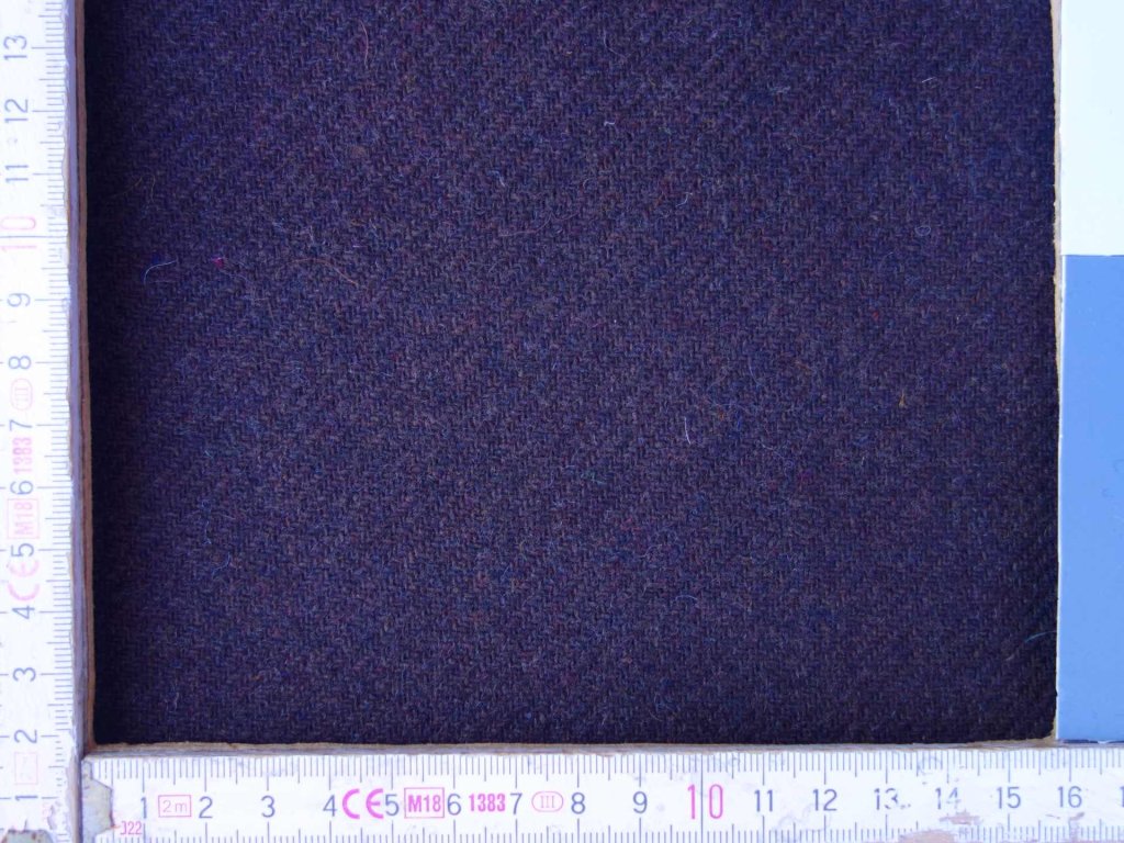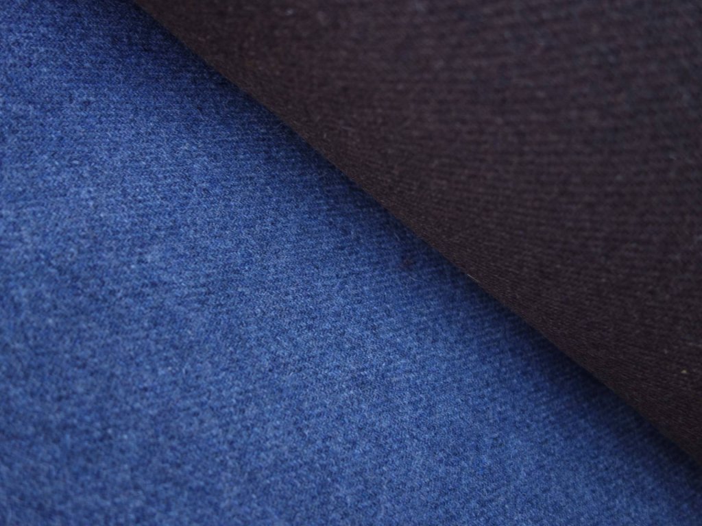 Medium thick, two colors woolen twill - top side brown, bottom side grayblue.